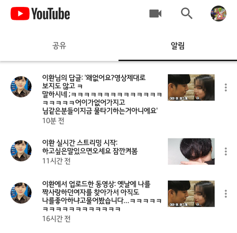 제목 그대로 유튜버 이환님이 내 댓글에 답글인가? 쨌든 뭐 글을 달았다고 뜨길래 바로 들어가 봤더니 갑자기 댓글 뚜들 당했어.. 사진 바로 첨부할게.