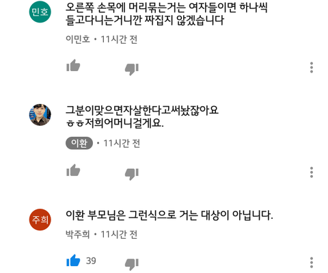 비꼰 것도 아니고 욕한 것도 아니고, 언급하지 말라는 '그 분'을 내가 언급한 것도 아니고, 영상에 나온 여자 분에 대한 글을 남긴 것도 아닌데 왜 나를 물타기 하는 사람으로 몰아가는 건 지 이해할 수가 없음.ㅎ