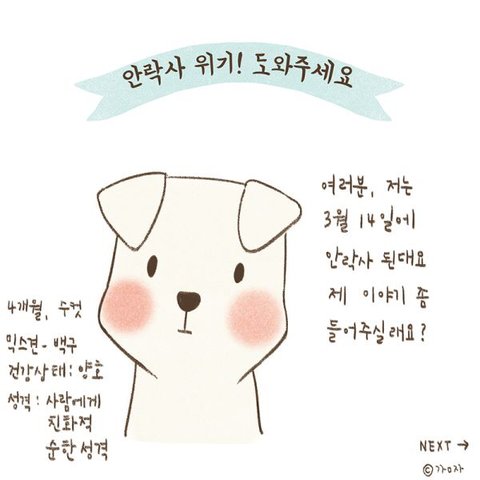 부디 많은 분들에게 입양 홍보 및 임시 보호 홍보 부탁드릴게요
