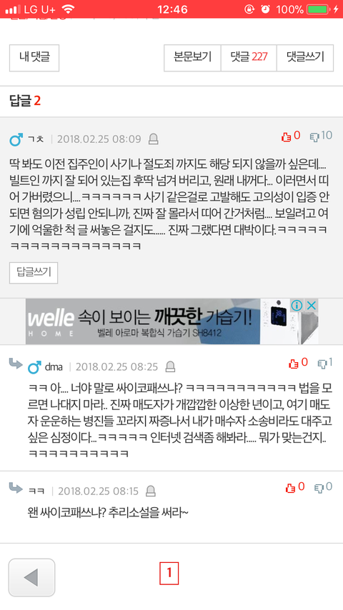 부동산에는 상황 얘기 해놓은 상태이고 아빠는 열받아서 주변 지인들에게 물어보고 엄마는 인테리어업자에게 물어본 상태입니다ㅠ(인테리어 할 때마다 이분에게 해줘서 비용적인 면으로 다른곳보다 저럼하게 해주심)