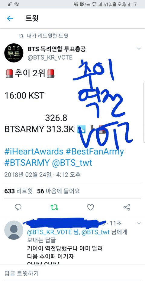오늘 내일 역전당하면 안돼 투표하러 ㄱㄱ