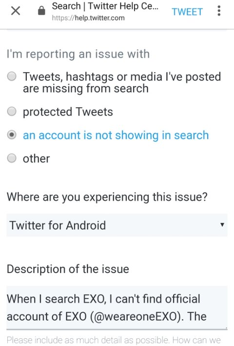 EXO 치면 타그룹 계정이랑 글 나온데 빠른 시일 내에 고쳐질 수 있도록 트위터 고객센터에 문의하고 오셈