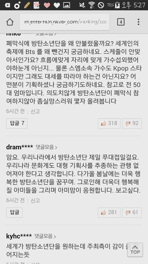 댓글 수준임 ㅇㅇ 가수 안 불렀다고 주최측이 시대를 못 따라간다~ 이러고 대형이라 그렇다 ㅋㅋㅋ; 그놈의 대형 ㅅㅂ 작년9월에 정해졌고 후보에도 거론 안됐는데;; 조카 정병난다