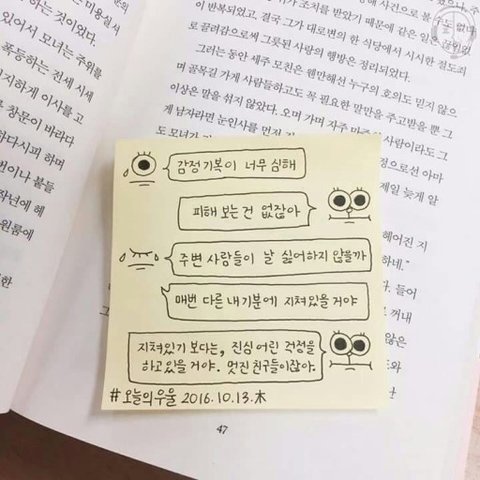 조언받고 싶은게 있어서 처음으로 글 써봐요 오타 양해 부탁드려요 제가 근래 1년간 많이 우울합니다. 친구문제가 심한것도 주변 환경이 엉망인것도 아닌데 조그만 것들로 너무 우울해요. 일단 내년이면 고등학교도 가야하고 이런저런 진로 고민에 한달간 심각하게 빠져있었어요. 제가 무언가를 특별하게 잘하는것도 아니고 공부도 막 잘하는게 아니라 뭘해야할지도 모르겠고 조금 막막합니다 그리고 지금 친하게 지내는 친구들 전부 솔직히 다 싫어요 혼자있는게 싫어서 일부로 맞춰주고 둘다 짜증나는 상황에 제가 먼저 사과하고 수구리는데 원래 이런성격이 아니라 조금 힘들어요. 그리고 제가 조그만일에 우울한 사람이라 상대방과 말하는데 그 상대방이 조금이라도 말투가 딱딱해지거나 아무것도 아닌데 정색을 하면 집에서 일주일이나 이주일동안 내가 뭘 잘못했지 뭐 때문이지 고민합니다 막상 나중에 물어보면 아무것도 아닌데요. 그냥 상처받는게 너무 두려워요 그렇다고 혼자서 당당하게 지내는것도 무서워해요 그냥 아무도 없는 공간에서 저 혼자 있고싶어요 그냥 심리 자체가 누군가와 잘지내고 풀어가는게 아니라 아무것도 없는 공간에서 저 혼자 있고싶어요 우울할때는 항상 그런생각이 들어요 그렇다고 매순간이 우울한건 아닌데 요즘들어 더 심각해져서 글써봐요.. 지금 까지 말한것들이 우울하다고 하기에 심각한 사연은 아닐지 몰라도 저는 충분히 힘들고 우울합니다 저보다 심한 분들도 많고 평범하게 사는거 자체에 만족하라고 생각하시는 분도 계실지 모르지만 우울한 이유가 무조건 심각하고 벼랑 끝에 서있는 상황이여야만 한다고 생각하지 않아요 사소한거에 우울한거는 왜 이러는지도 모르겠고 여기서 스트레스 더 받으면 진짜 너무 힘들것같아요.. 어떻게 해야하죠...