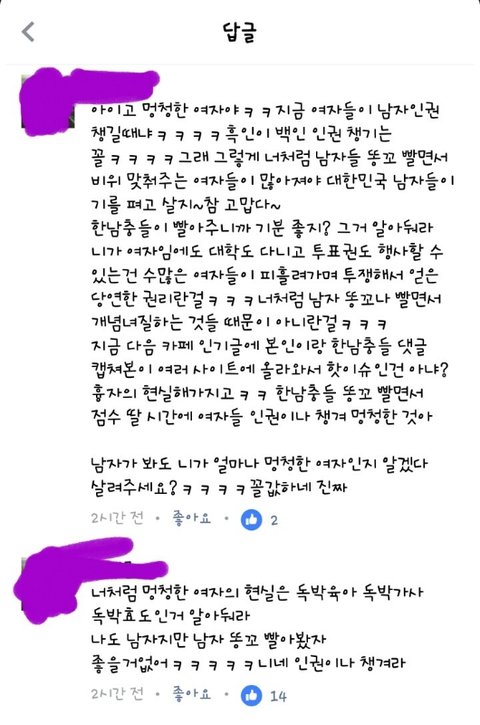 한남충 아웃 ㅂㄷㅂㄷ 이러는거 비참하지않냐?