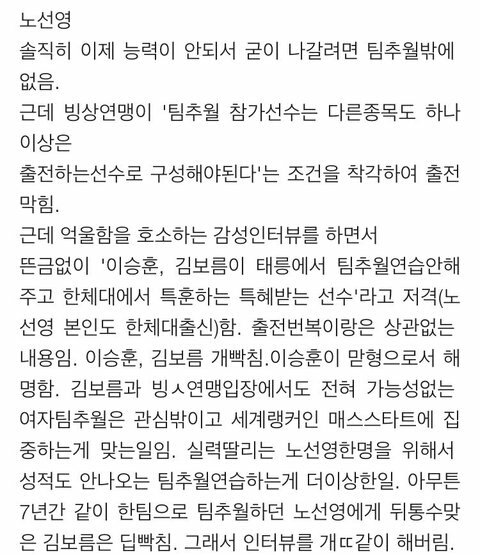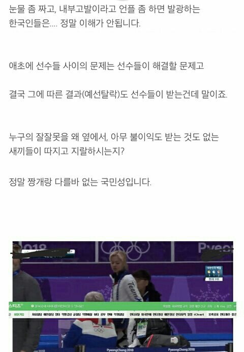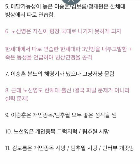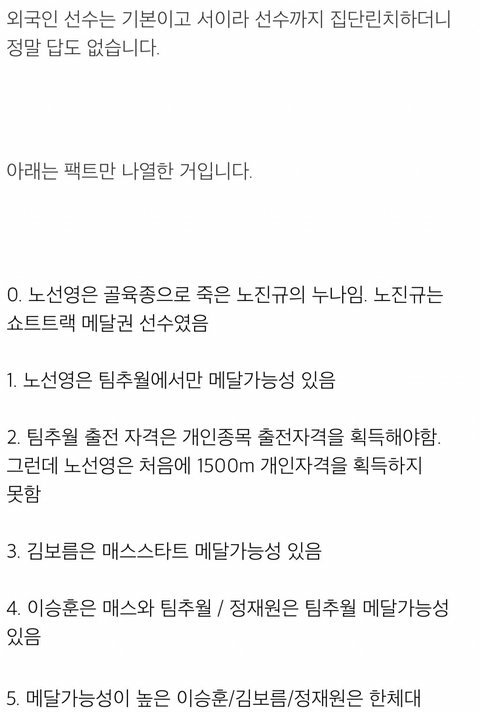 다시한번말할께 이글은 옹호하고 쉴드쳐주는글이아니고 사건이있기전 전후사정.빙상연맹이 총알받이로쓰는 김보름선수에 관한글이야