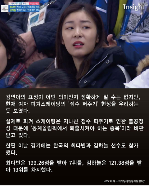김연아 최고점받을때 해설진이 이점수는 안깨질거에요 이랬는데 점수퍼주기 진짜 극혐...
