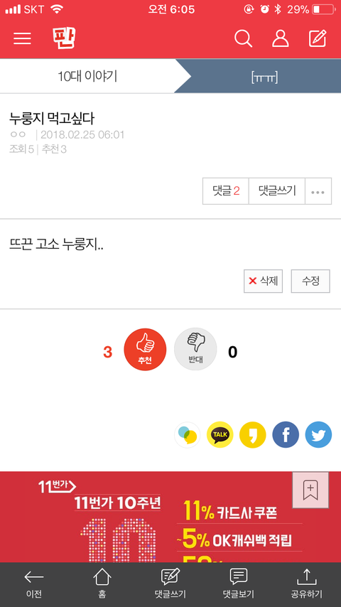 저 글에도 추천 1에서 3으로 오름!!