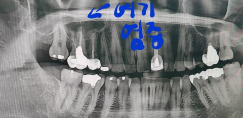 치아 위에 예전 치료하다 생긴 염증으로 인해 농이 찬거라서 바로 치아 발치 후 임플란트나 브릿지를 해야한다 하셨어요