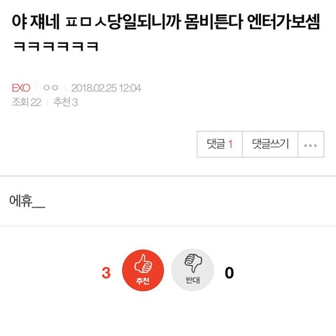 댓글로 동조하는 엑소엘과 영상을 숨기려는 엑소엘 그리고 뻔뻔하게 우리는 잘못없다는 엑소엘까지^^ 설특집 삼종세트냐?고오~맙다