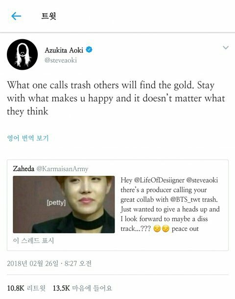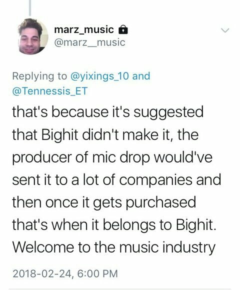 댓글로 봐서 위에 사진 대충 번역하면 저 프로듀서가 마이크드롭이 쓰레기인 이유가 방탄 프로듀서와 방탄이 직접 만든게 아니기 때문이고 빅히트에서 데모곡을 샀다는 개소리를 지껄임