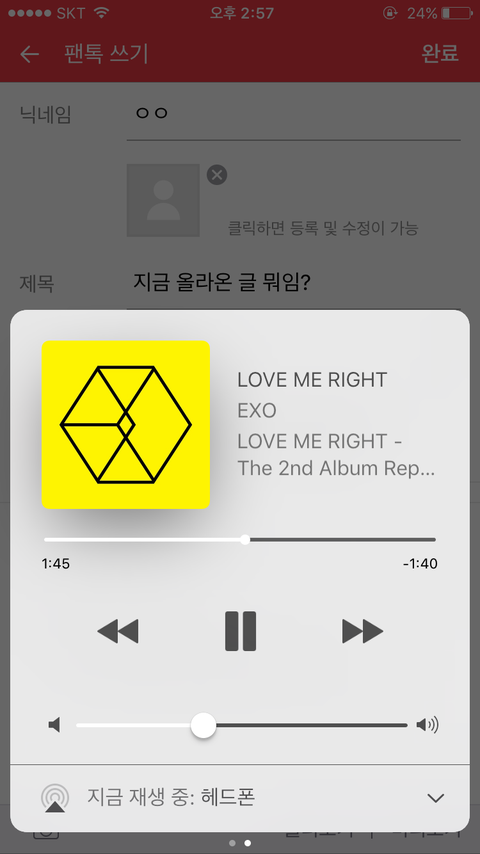 앞에 첸 왜 붙음?? 종대가 올렸다는거?