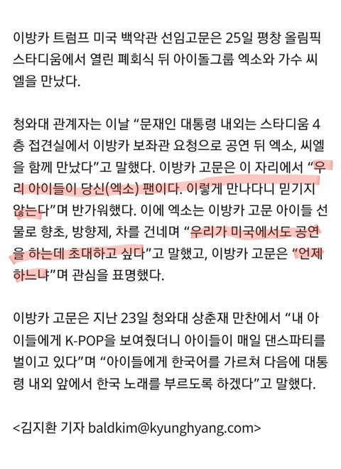 아방카딸은 엑소팬이래ㄷㄷㄷㄷㄷ