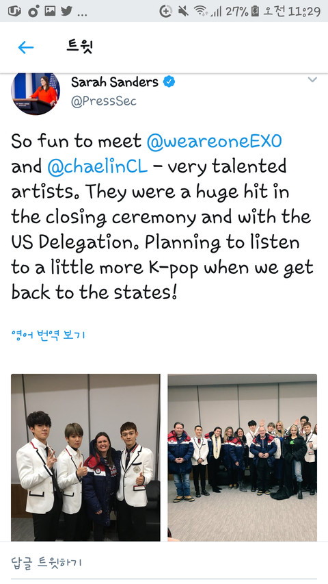 백악관대변인 트윗에엑소