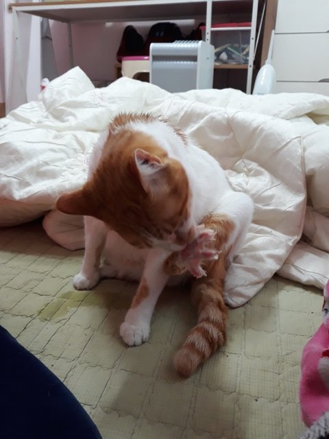 까치 구경간 도칠이 발이 너무 까매서 발만 물로 씻겨줬음.