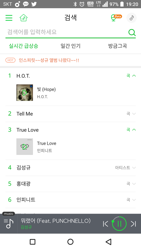 멜레기 실검 트루러브 있는데 잉피 곡으로 뜬다