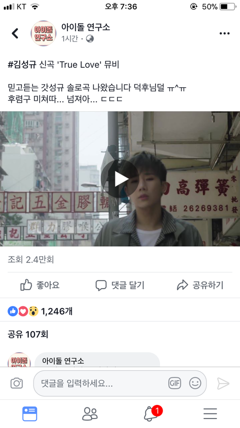 ㅌㅅㅇㅌㅈㅇ)ㅍ북에 성규 뮤비 뜸!