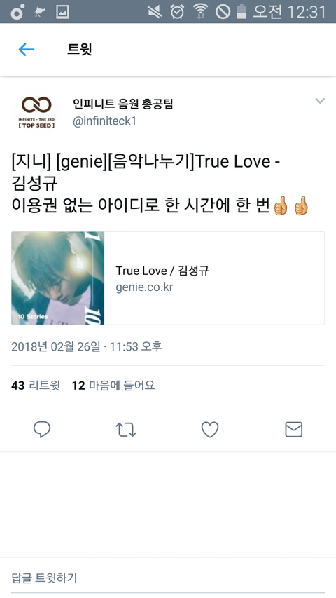굳이 스밍권 안 사도 성규저장소나 음총팀에서 지니 음악나누기 올려주니까 1시간에 1번 꼭 듣자ㅠㅜ
