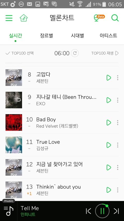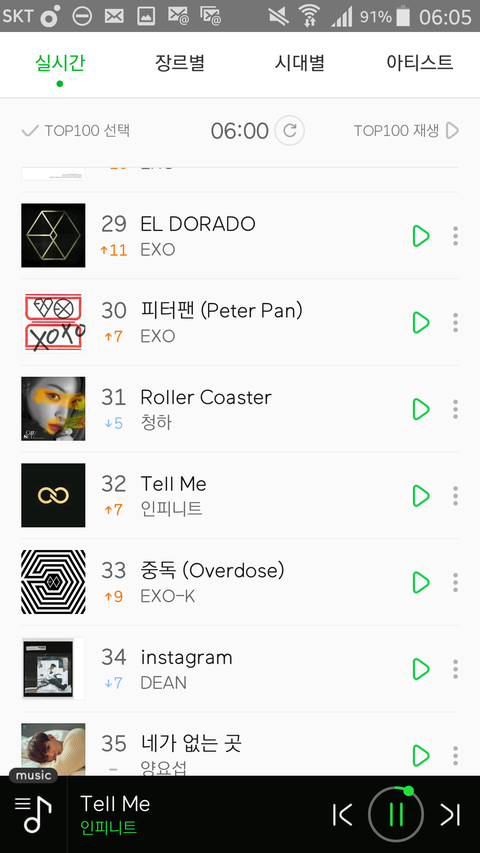 올랐다ㅜㅠㅜㅜ ㅠㅜ 미친ㅜㅠㅡㅜㅠㅜㅜㅜㅜㅠ텔미 엊그제 90위쯤됬었던것같은데ㅜㅜㅜㅜ 그리고 성규솔로 지금 11위ㅜㅜㅜㅜㅜ 더더힘내자!! 더올리자!!