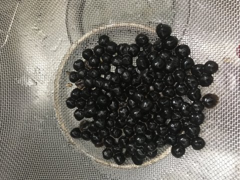 타피오카펄을 체에 받쳐서 물기를 빼주고 찬물로 헹궈줘