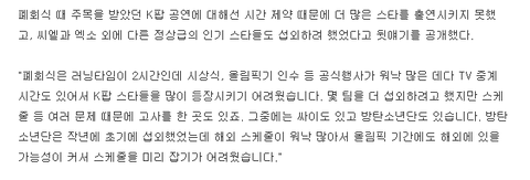 작년 초기에 섭외 했지만 한참 해외 스케 있을 때라 올림픽 기간에도 해외스케 있을 것 같다는 예상으로 폐막식 무대 거절