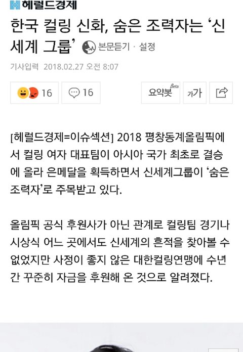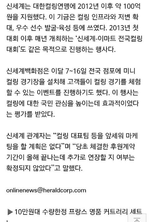 1. 2012년부터 신세계그룹이 대한컬링연맹에 100억원이라는 막대한 금액을 후원중.