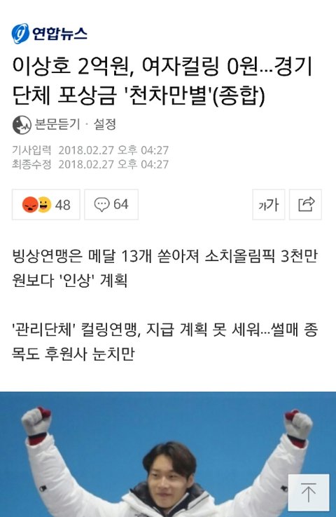 3. 은메달 딴 여자컬링팀 포상금 0원.