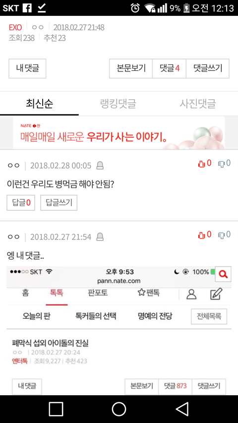 댓글 많은 톡