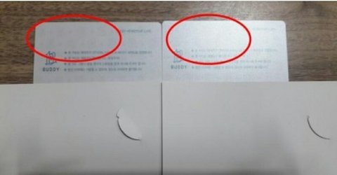 물품 배송 결과 회원카드에 회원번호가 누락된 사실이 확인되고 다시 회수, 포토카드 뒷면 편지 중복(은하), 펜침 문제(뒤가 아닌 앞에 붙어 있음),