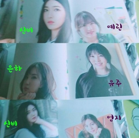 나이 순서대로 ' 소원 예린 은하 유주 신비 엄지' 순으로 들어가야 했을 것으로 보이나 '신비 예린 은하 유주 신비 엄지' 소원이 누락되고 신비만 두장 들어간 것 또한 신비 사진 두장은 중복도 아닌 서로 다른 사진