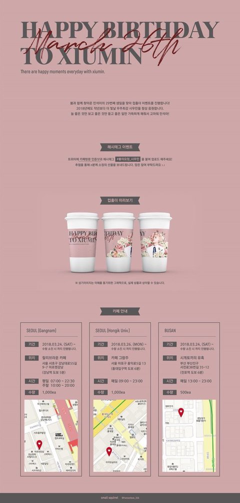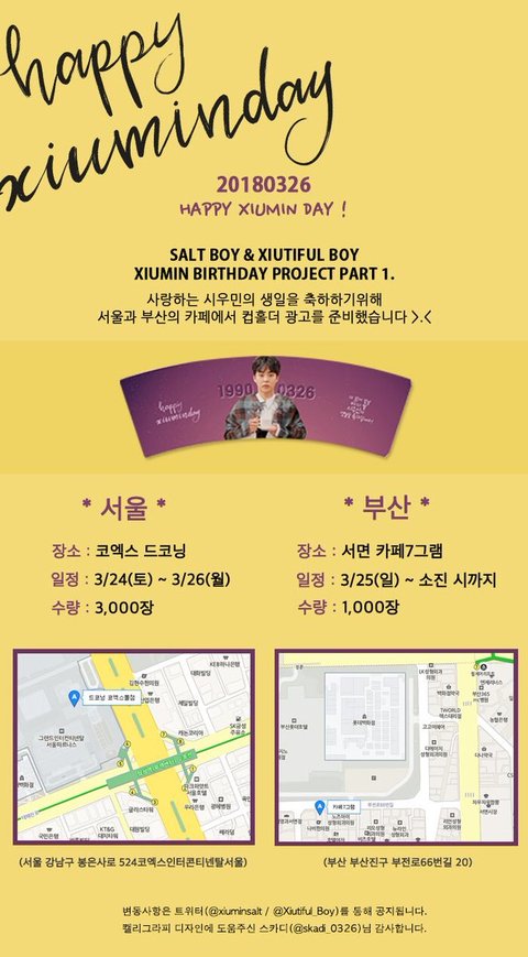 사랑하는 시우민의 29번째 생일을 맞이하여 부산 서면역에서 광고를 진행합니다!