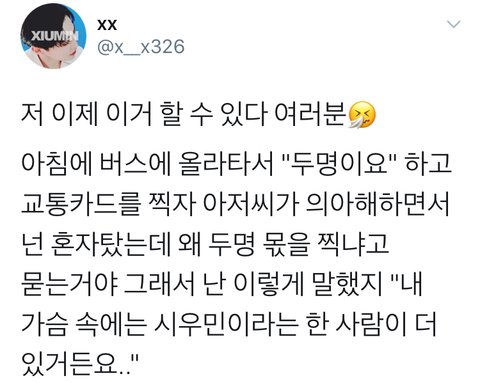 기사님!! 제 가슴 속에는 시우민이라는 한 사람이 더 있거든요!!