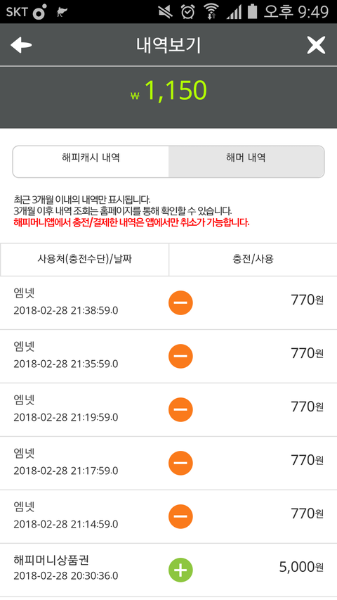 9시타임엔 해피머니로 5개 다운함ㅜㅠ