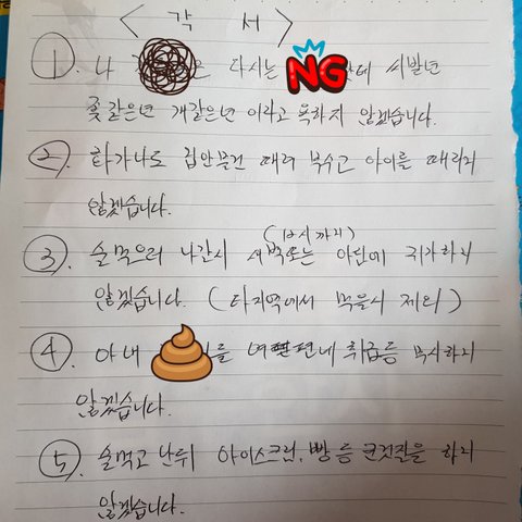 출산 전 남편은 자상하고 따듯하고 저를 많이 사랑해주고 누구보다 제 우선순위였는데 출산 후 남편은 아래 각서처럼 변해버렸네요.