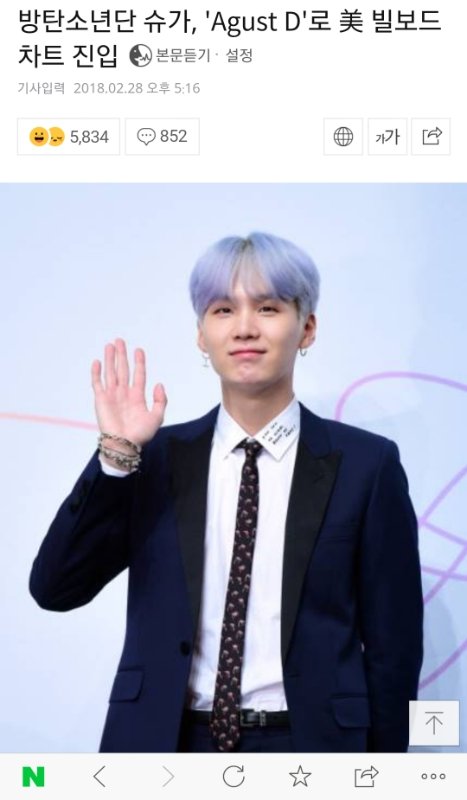 방탄소년단 슈가 네이버뉴스 메인에 뜨길래 봤는데 미친