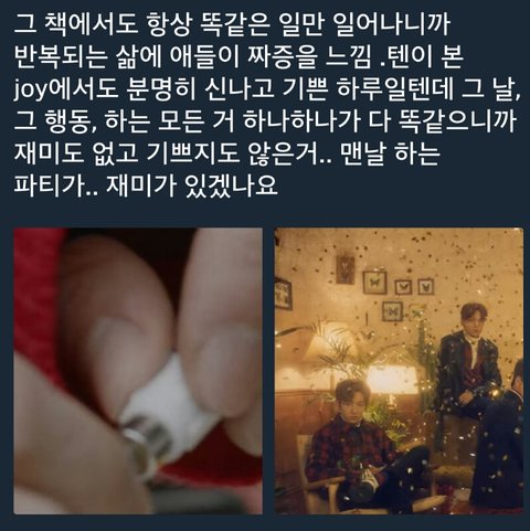 혼자살아삼은 마크가 꾸는 꿈속에서 똑같은 파티만 반복해서 하니 재밌지않고 무표정이었던 드림이들..