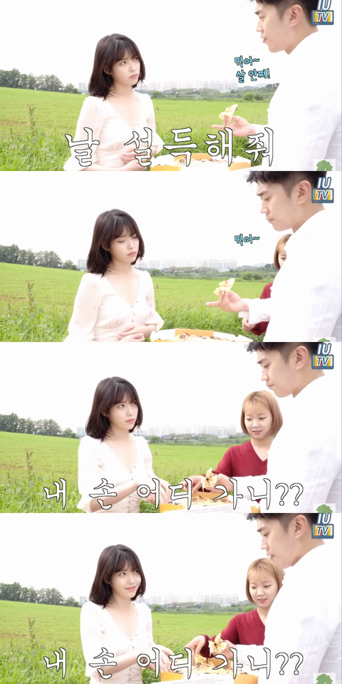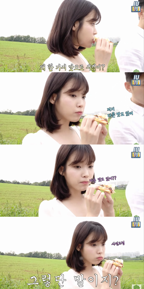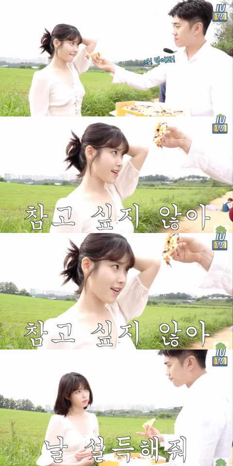 꽃갈피 둘 티저 촬영 때문에 다이어트 중인 아이유 vs 매니저가 점심으로 사온 피자