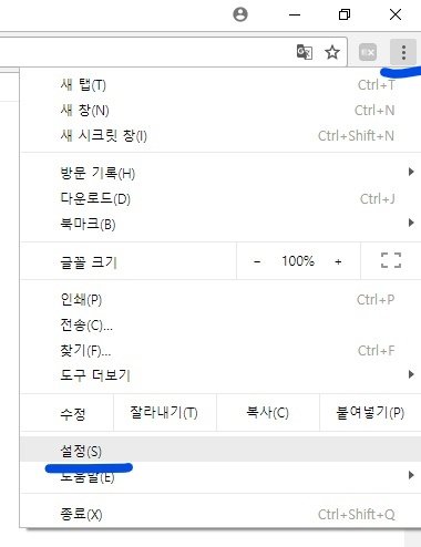 1) 상단 점3개 -> 설정 클릭