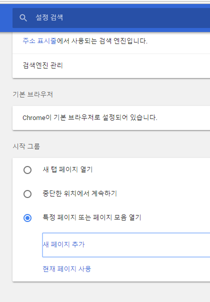 2) 시작그룹>특정페이지 또는 페이지모음열기>새페이지추가