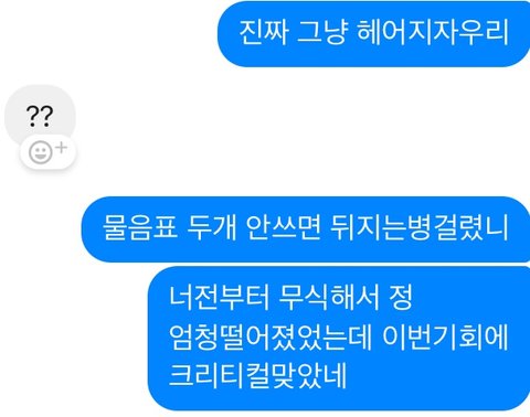 심지어 mean이거 싸우기전에 써놓은건데 어딜 김칫국을쳐마시고 내가 먼저사과하기 부끄러서 저기에 미안 적어놓은줄아네 ㅆㅂ 아 개빡쳐 헤어지고싶다 어카냐