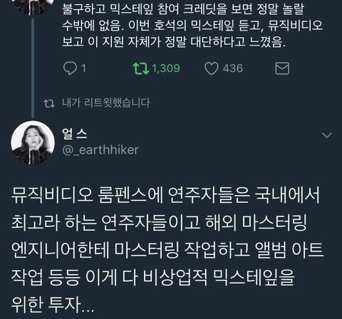 참고로 믹스테잎이 뭐지 하고 궁금해 하는 사람이 있을까 설명하는데 서치하면 더 정확하겠지만 러프처럼 경계가 없는 그런 곡이라고 할까?? 음반이나 특정 사이트에 발매 되는게 아니라 사클 통해서나 다른 사이트에서 무료로 들을 수 있는 노래야ㅠㅠ 이게 완벽한 정의는 아니지만 내 기준에선 이렇다 말할 수 있지