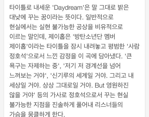 백일몽이라는 제목 노래는 백일몽 자체가 낮이 꾸는 꿈이라고 정의할 수 있거든.