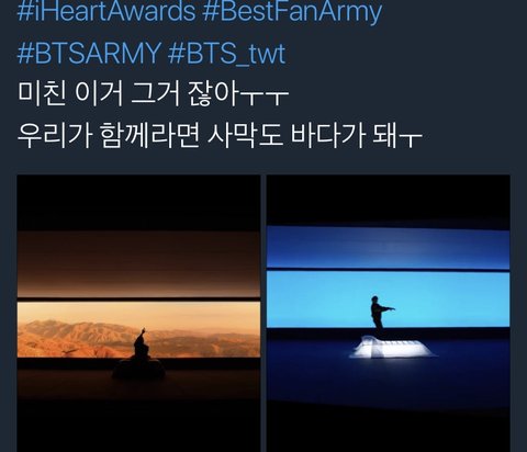 그때 제이홉이랑 멤버들이 멘트 하면서 많이 울었거든. 지금도 아미들은 그 영상이랑 멘트 들으면 눈물 흘리고