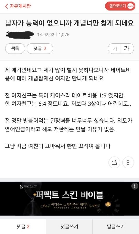 능력이없으니까 저렴한 여자만 찾게되네요...