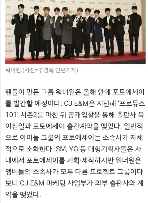 워너원 포토에세이 출간예정이래