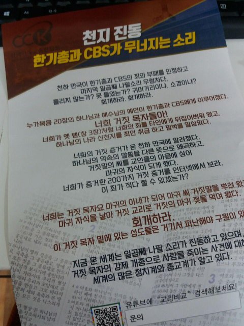 오늘 길거리에서 사람들이 이런 전단지 나눠주던데...