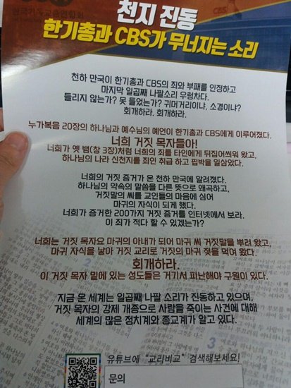 왜 한기총과 CBS는 여기에 대해서 반박을 안하는지.....그만큼 전단지의 내용이 사실이라는 거겠지....