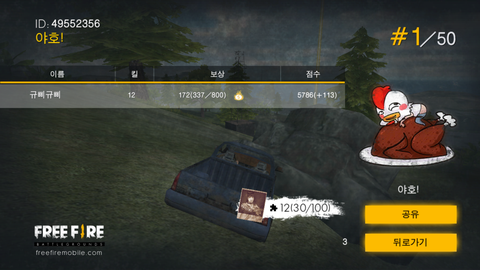 1등한 적 ㄹㅇ로 많은데 캡쳐를 귀찮아서 안 함 사진을 보면 알겠지만 한 판 12킬함ㅎㅎ 50명 중 12명을 내가 없애부린거임 기모띠~~~♡ 질문있음 해조