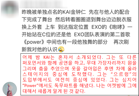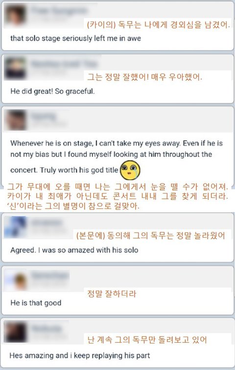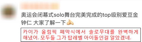 해외반응이 좋아서 올림픽 카이 독무에서부터 엑소 무대까지 계속 돌려보게 되는거같다