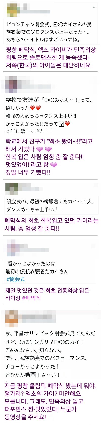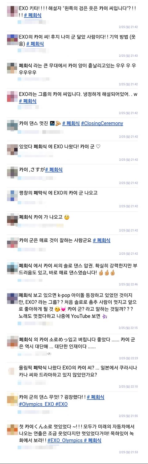엑소 카이의 올림픽 폐막식 독무 본방송은 이거야